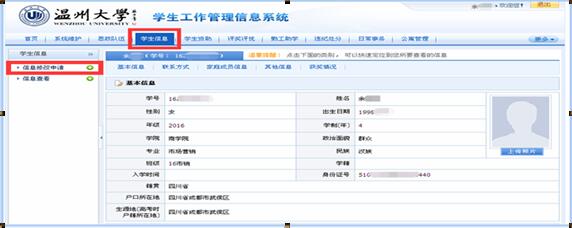 3.点击“学生信息”—“信息修改申请”