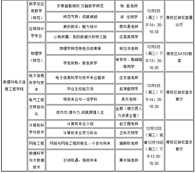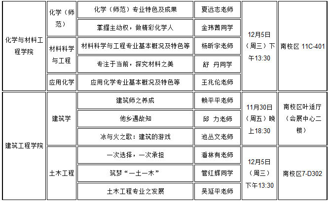 为了让2018级学生更深入地了解本专业,同时为各个专业提供一个向全校师生展示和交流的平台,学校特开展色情视频 2018级“我的大学 我的专业”专业宣讲系列活动。本学期共有9个学院30个专业向全校师生开放宣讲,欢迎广大师生踊跃参加!具体安排如下: