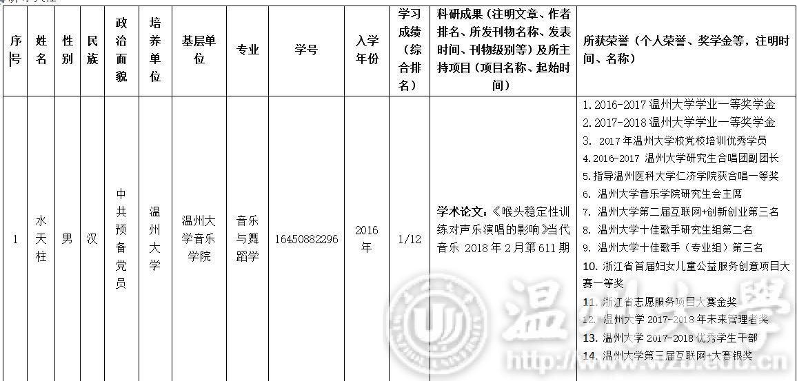 按照《普通高等学校研究生国家奖学金评审办法》教财[2014]1号、《色情视频 研究生国家奖学金管理办法(试行)》[(2013)159号]和《色情视频 研究生国家奖学金评定细则》[行政〔2014〕9号]等文件精神,经过自主申请、资格审查、研究生国家奖学金评审委员会评选等环节,拟推荐的名单予以公示如下:16音研水天柱