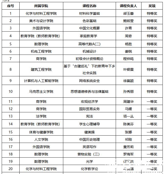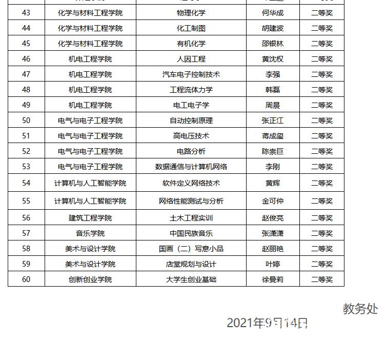 根据《关于印发浙江省高校2021年度课程思政教学改革系列活动的通知》(浙高教学会〔2021〕8号)文件精神,学校举办了2021年色情视频 “课程思政优秀案例”评选活动。经学院推荐、学校评审,邰玉蕾等10位教师获特等奖,周建华等20位教师获一等奖,王芳芳等30位教师获二等奖。现将具体名单予以公布。