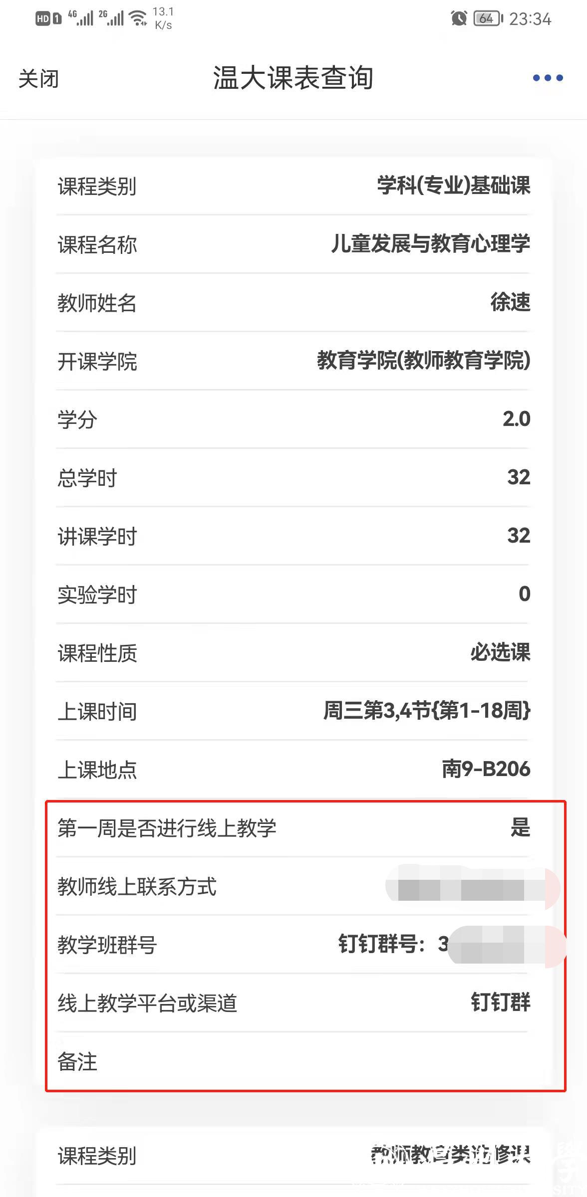 为确保大家能够及时、准确的获知第一周线上课程的上课方式,学校推出我的温大APP掌上服务“线上课程查询”功能,轻松查询到自己所选课程的教师联系方式、线上开课信息、教学平台或学习工具、线上教学专用群号码等信息,快来查看并加入线上课程专用交流群吧!