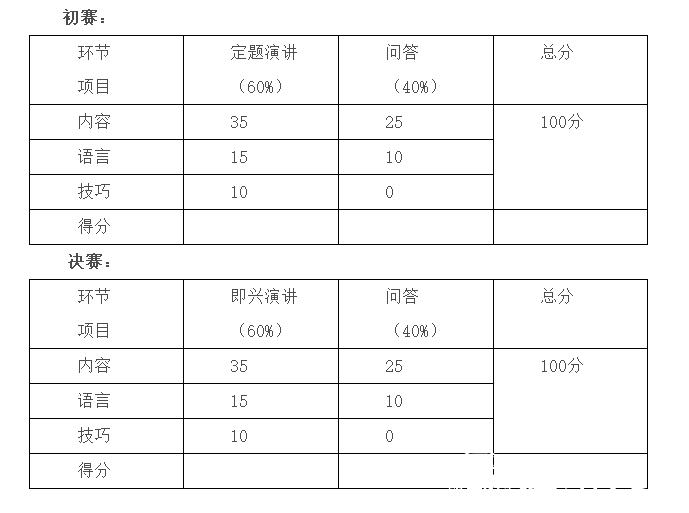 4、竞赛内容:由即兴演讲和回答问题组成。