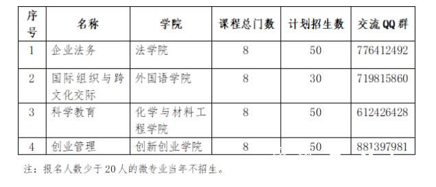 (四)审核录取:报名结束后由微专业开设学院统一选拔,学校将在教务处网站公布各微专业录取名单。