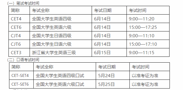 2025年6月浙江省大学外语三级考试和全国大学外语四、六级考试报名即将开始,现就考试报名有关事项通知如下: